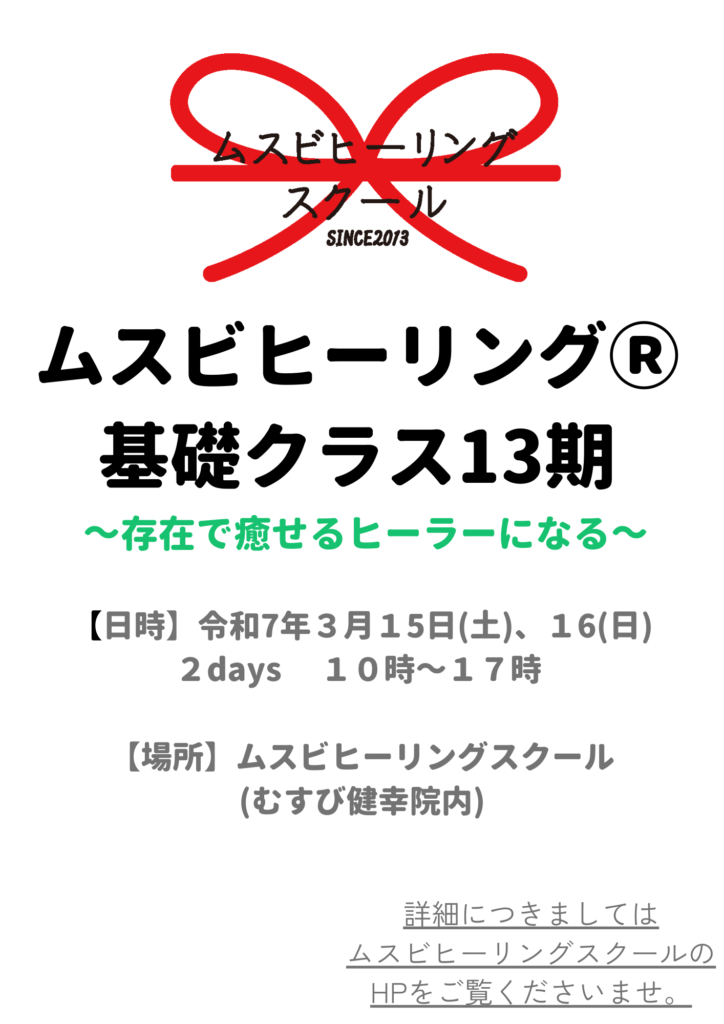 みなさまの(必須ではありませんがムスビヒーリングを受けてからの受講をおすすめいたします)ご参加をお待ちしております(^^)